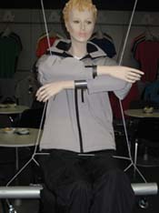 Also, products with metal and shiny accents were more common, like the jacket below that has metallic-finish wristbands.