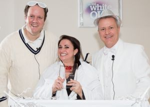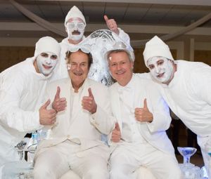 December 21, 2012 ’Tis the SeasonFiled under: News About ASI Like so many other businesses, ASI held its annual holiday party this week in our company cafeteria. To make it special, we decided on a “Winter White Out” theme and encouraged all employees to dress in white. Fully in the spirit of the occasion, I found a white tux to rent, which I topped off with a white bowler. Beautiful ice sculptures, carved on site with actual chain saws, provided a cool-looking back-drop, along with servers who looked like members of the “Blue Man Group.” Throughout the party, employees could sit on a full-sized ice throne to get their photo take — at bottom right, I’m sharing a very cold toast with ASI Chairman Norman Cohn and some of the extraordinary crew. One of the highlights of the day was the annual awards ceremony, where ASI recognizes the year’s top employees. You might recognize some of the names so I’d like to share them with you below: