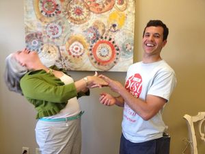 In the top pic, I’m celebrating a victory over Danlyn Iantorno, the COO of Specialty Incentives, in Rock-Paper-Scissors. The bottom pic is Melinda and I at the wine tasting at A+ Wine Designs. |